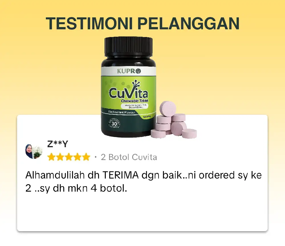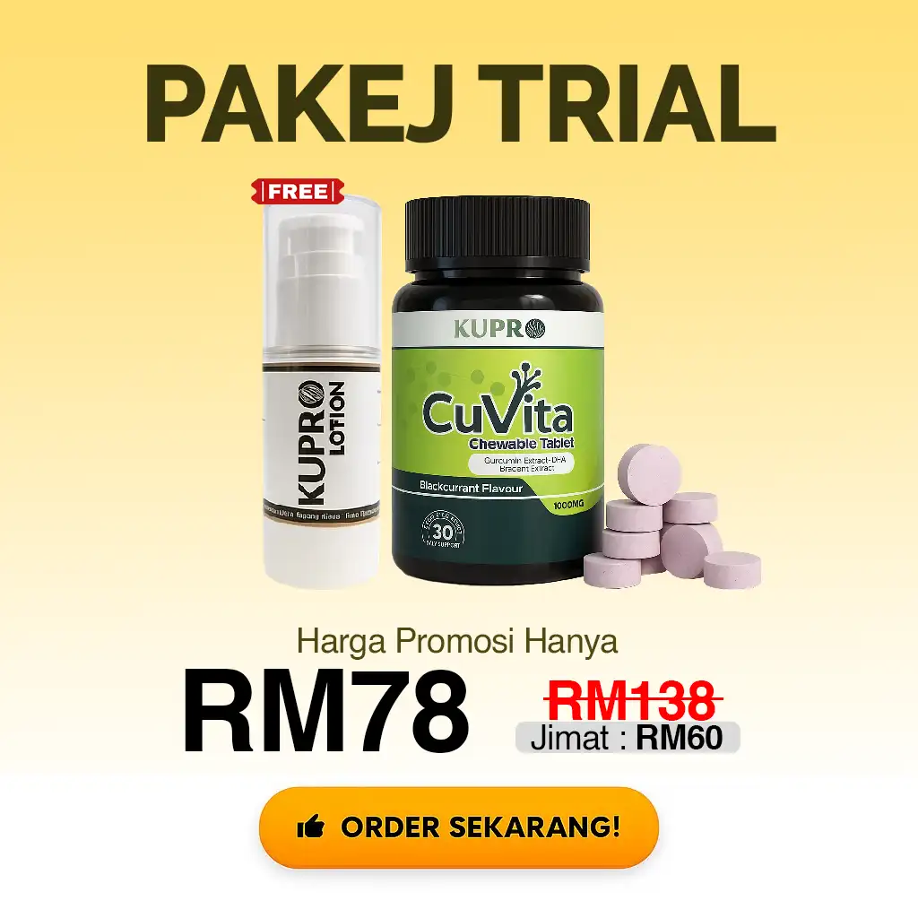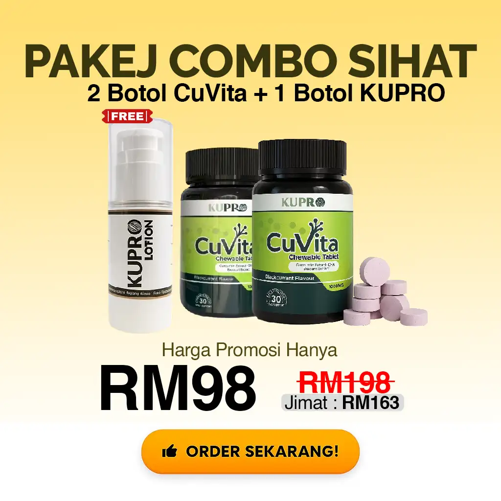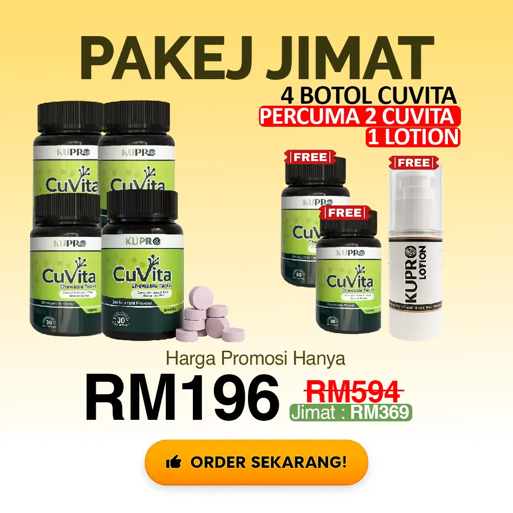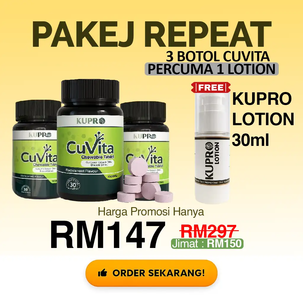 Sebab itu, kami bagi jaminan. Takde siapa pun rugi untuk cuba produk LOSYEN KUPRO & Cuvita. Cubalah produk ni sekarang. Sekiranya… selepas dah amalkan selama 3 bulan. Kalau tak suka dengan kesan. Rasa tak Sedap. Tak suka bau. Tak suka texture. Pulangkan balik.